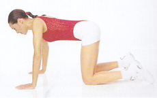 Starting Positions: (1) On all fours. (2) Kneeling, hands at sides, heels on buttocks, and back straight. (3) Standing, legs slightly bent and hands on thighs.