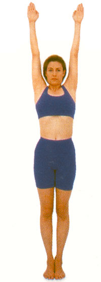 - Raise your arms above your head, perpendicular to the floor. Stretch your arms and fingers. Push your shoulder blades into your body.