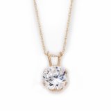 14k Gold 6.5MM Cubic Zirconia Pendant With 18-Inch Chain |