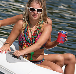 2. Dress in light, loose, cotton clothing. Natural fabrics like cotton are much cooler than most synthetics (though there are new high-tech synthetics made specifically to keep you cool). Protective hats (Wide-brimmed) keep the sun out of your eyes and provide some cooling shade. Loose fitting clothes allow air to circulate, keeping you cooler. The fewer clothes, the better, but make sure to be appropriate to the circumstances