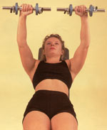 - Immediately thrust the second dumbbell upward, while simultaneously allowing momentum and the dumbbells to guide you back into the lying position while your abdominal muscles help safely ease you into the position. The reason for lying back immediately when the second dumbbell is thrust upward is so you do not injure your shoulder joints or lower back from having to hold the dumbbells in that otherwise awkward position. Lying back immediately following the dumbbell’s momentum while allowing the abdominal muscles to ease you into position will help ensure your safety and keep your strength at its peak for the exercise. This may should difficult, but it’s not. It is the safety and easiest way of getting the dumbbells into position (especially if you’re using heavy dumbbells ).