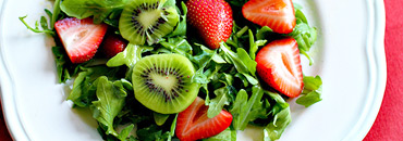 Arugula Salad with Kiwi, Strawberries and Pecans