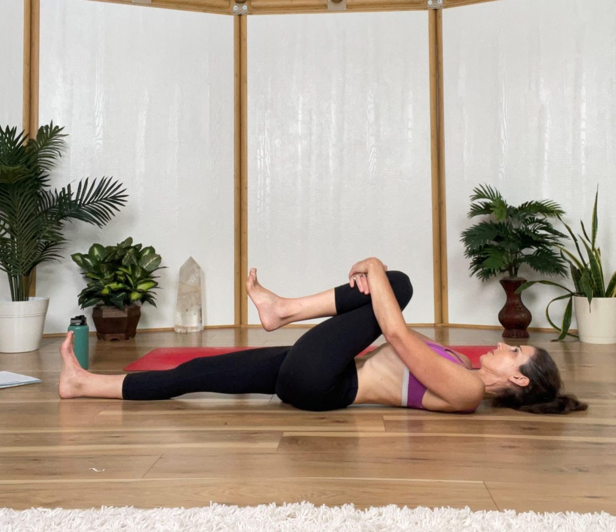 - Bring left knee to belly and straighten right knee if that feels okay on your back.