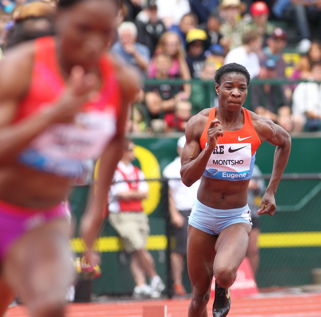 At the 2011 World Championships in Athletics in South Korea, she narrowly beat Alyson Felix to become Botswana’s first World or Olympic track and field champion. At the 2012 Olympics final she placed 4th with 49.75 seconds. At the 2013 World Championships in Athletics in Moscow, in a terrific race she was run down in the final metres by Christine Ohuruogu, losing by just four thousandths of a second when Ohuruogu dipped and Montsho remained upright.