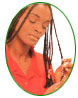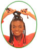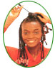 Ring the changes on finely braided locks by adding bright cord and tying the hair in a top knot