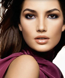Sweep a smoky charcoal, dark brown, or deep plum eye shadow into your