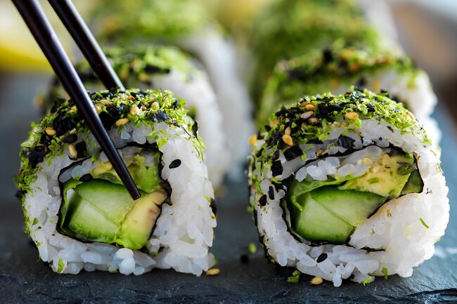 It offers up antioxidants: When you choose sushi rolls made with vegetables, you’re doing something great for your health. Most contain antioxidants, which counteract free radical damage and keep you looking and feeling young and healthy. Not only that, but antioxidants can help ward off many scary health issues, including cancer and heart disease.