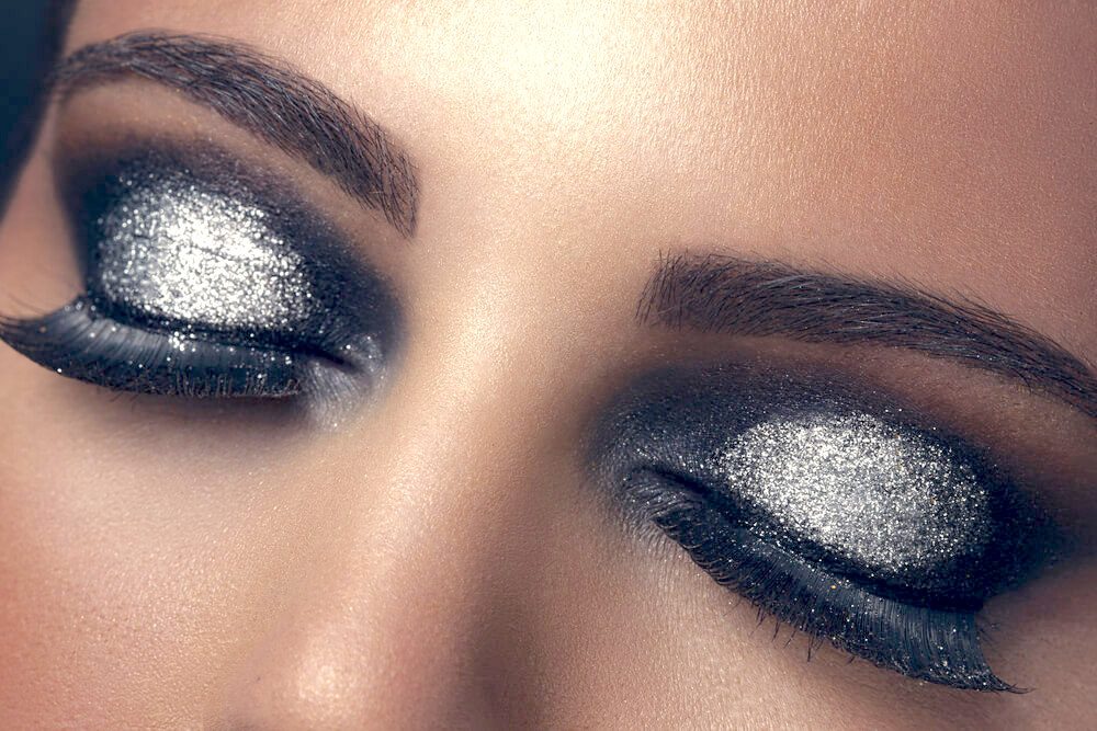 Next, we have this super glam look. The eyes have a beautiful silver tone with sparkles and black eyeliner. Makeup like this is a great choice for the ladies who want to try a little sparkle without being too over the top. Pair with red lips for a bold, festive look or with nude or pink lips for subtle and chic makeup. Either way, you will look stunning!