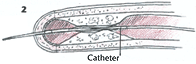 artery to a point just beyond the blockage. A catheter is then placed in the