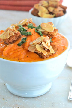 vegetables, including cauliflower, mushrooms and mange-tout peas.