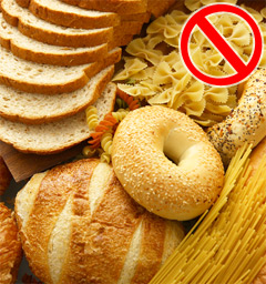 Avoid all foods made from wheat, rye, bran, enriched flour, bulgur and