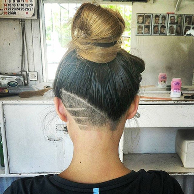 Shaved hairstyles for women are a challenge, and cornrows aren't just for black women - any nationality can flaunt this classic style with a twist. This particular provocative look involves shaving the sides while working the rest of the hair into dozens of small braids. Pull it all back into a ponytail to show off the final look.