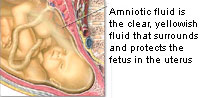 Amniotic fluid is an important part of pregnancy and fetal development. This watery fluid is inside a casing called the amniotic membrane (or sac) and fluid surrounds the fetus throughout pregnancy. Normal amounts may vary, but, generally, women carry about 500 ml of amniotic fluid. Amniotic fluid helps protect and cushion the fetus and plays an important role in the development of many of the fetal organs including the lungs, kidneys, and gastrointestinal tract. Fluid is produced by the fetal lungs and kidneys. It is taken up with fetal swallowing and sent across the placenta to the mother's circulation. Amniotic fluid problems occur in about 7 percent of pregnancies.