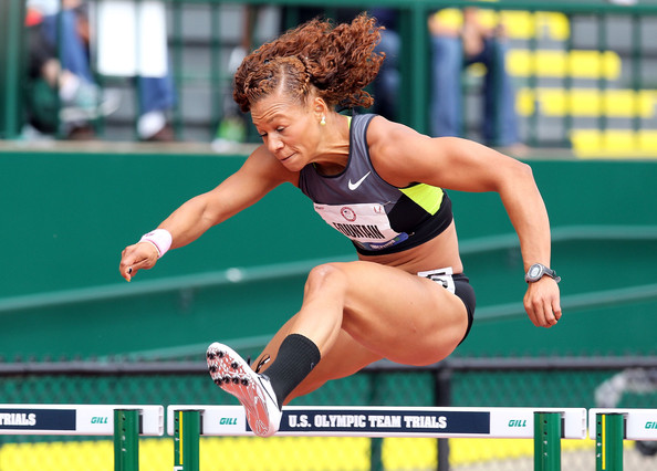 Her time of 12.65 in the 100m hurdles at the 2008 Olympic Trials, worth 1,178 points on scoring tables, broke three records: American record, heptathlon 100m hurdles (12.69, Jackie Joyner-Kersee, 1988, Seoul); Olympic Trials record, heptathlon 100m hurdles (12.71, Jackie Joyner-Kersee, 1988, Indianapolis); and USA National Championship record, heptathlon 100m hurdles (12.77, Jackie Joyner-Kersee, 1991, NYC).