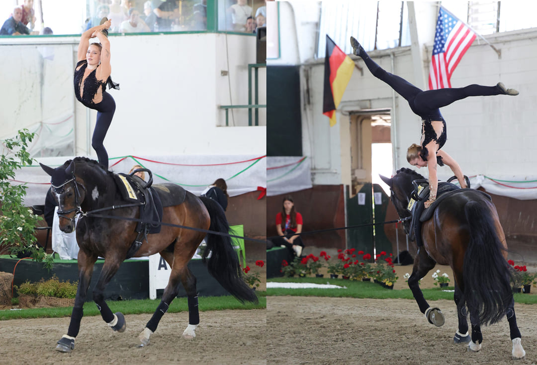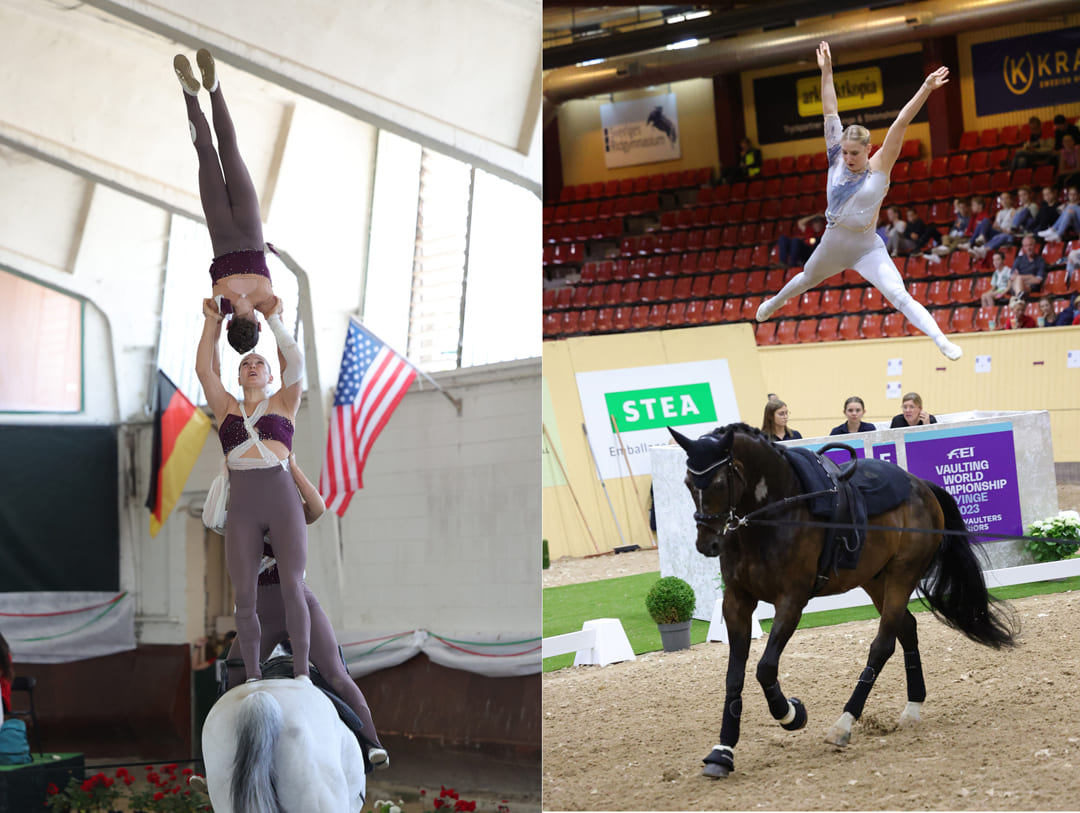 Vaulting is a unique combination of harmony with the horse, showing difficult acrobatic skills and creating a captivating story and choreography with music. It’s important to develop an artistic concept that the spectators understand. For me, I always chose music and choreographies I felt passionate about. For me, connecting to the spectators and being able to create a unique atmosphere while at the same time performing skills and creating unity with the horse is just such a fascinating and rewarding feeling in vaulting.