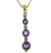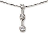 Three round diamonds, graduated in size, hang vertically in two-prong