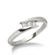Three round diamonds in two-prong settings of 14k white gold meet in the