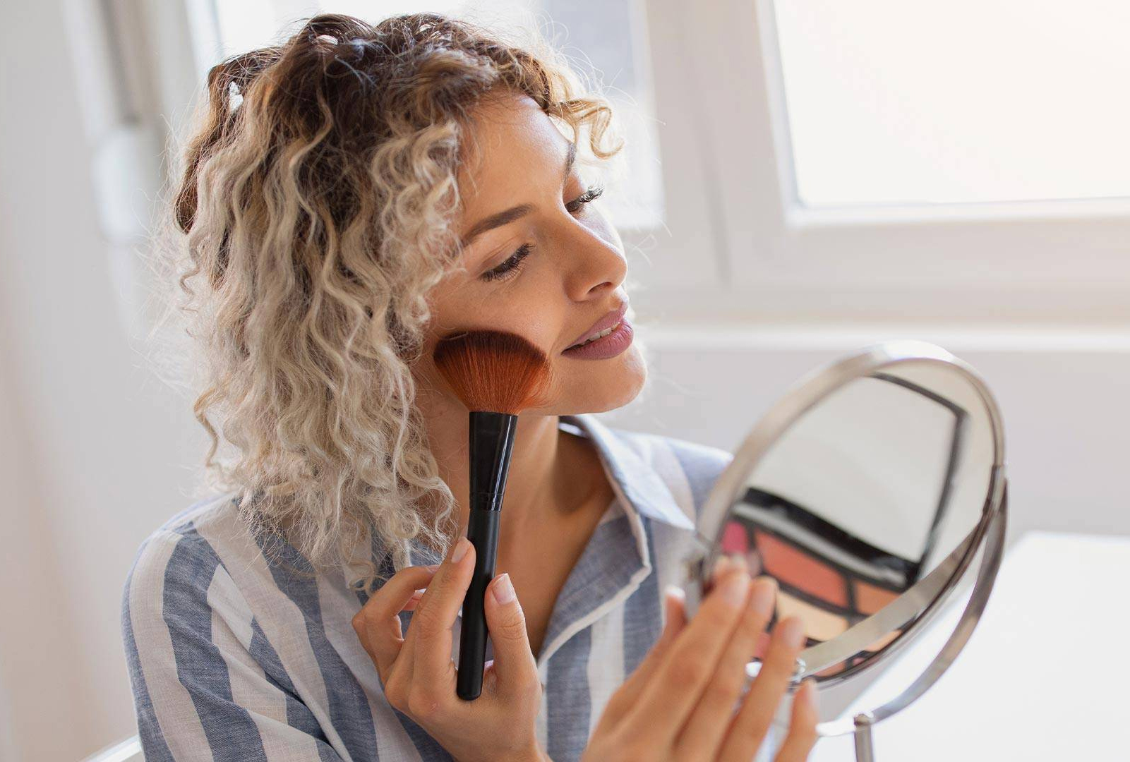 Mineral makeup comes in a variety of forms – and at prices ranging from less than $10 to more than $50 per product. These are light, finely ground loose minerals that are buffed into the skin using a wide, fluffy brush.