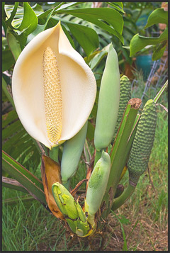 The fruit is up to 25 cm long and 3�4 cm diameter, looking like a green ear of