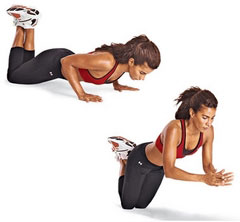 Note: alternatively you can lower your chest close to the floor, push yourself up forcefully so your hands leave the ground and clap your hands together. Land your hands back in the starting position and repeat.