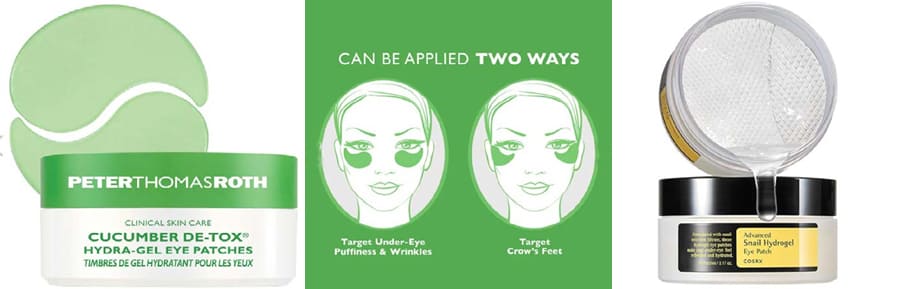 Cold therapy reduces puffiness fast. You don’t need anything fancy – keep two metal spoons in the fridge or try a reusable gel eye mask. For travel or events, I love the Peter Thomas Roth Cucumber De-Tox Eye Patches, but an affordable dupe is the COSRX Advanced Snail Hydrogel Eye Patch – hydrating, smoothing, and under $20 for 60 eye patch pairs.