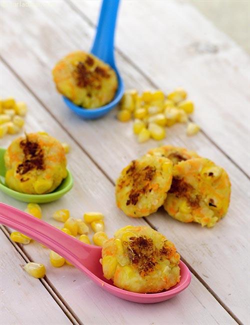 - Make small balls of the corn mixture, flatten slightly and deep fry.