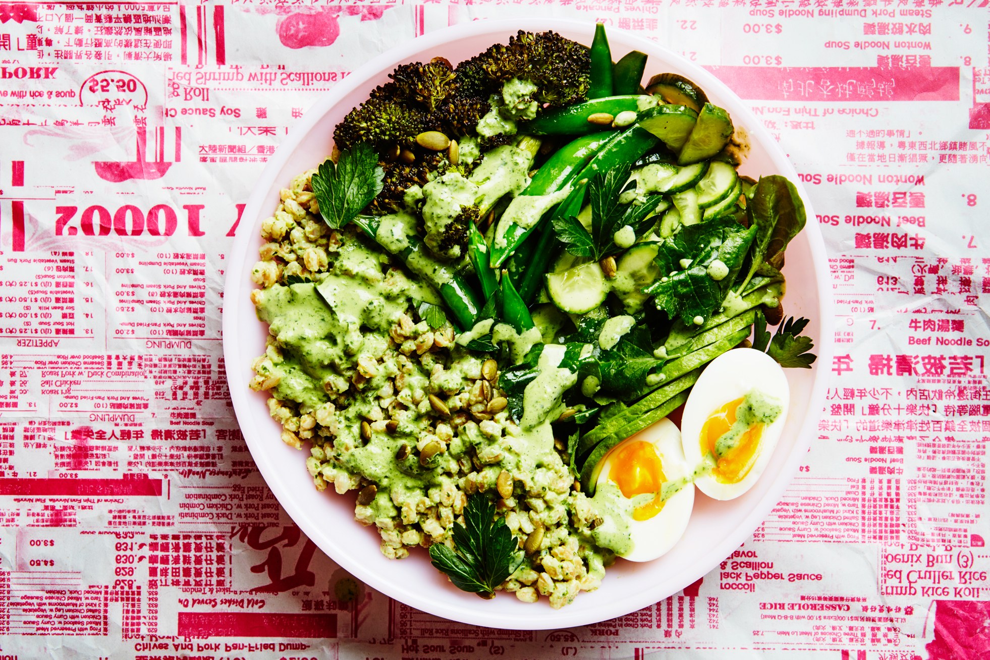 - A dollop (about 2 tablespoons) of Green Goddess Dressing (see below)