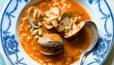 To make the Bolognese sauce, cook the onion and garlic in the stock for 5 minutes or until the stock has reduced. Add the beef and cook quickly to brown, breaking it up with a spoon. Add the wine, tomato puree, chopped tomatoes, rosemary and all spice, bring to the boil and simmer for 1hour. Adjust the seasoning.