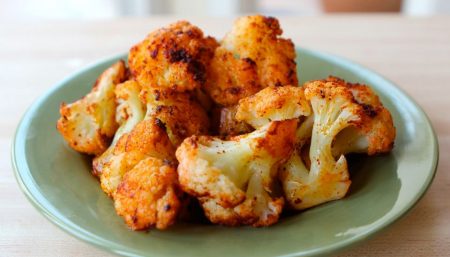 - Spoon tomato sauce over cauliflower on pan and mix with spatula until florets are well coated, 1 minute. Roast cauliflower 10 minutes. Stir, and bake until florets are tender, about 5 minutes. Serve hot or warm.