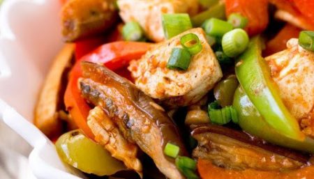 - In medium skillet over high heat, add 1 tablespoon peanut oil. When oil is hot, add garlic, ginger, scallions and stir-fry until fragrant, 30 seconds. Add cabbage, onion, red and green peppers and stir-fry until vegetables are barely crisp-tender, 2 minutes. Add contents of pan to bowl with drained noodles.