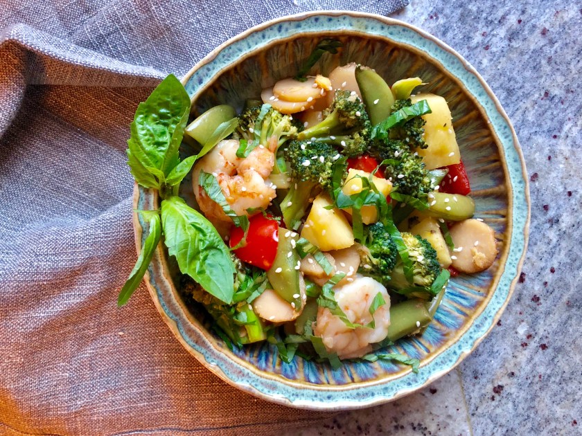 - Serve on its own or over brown rice, quinoa, or another whole grain of your choice. Finish with a garnish of thinly sliced basil and sesame seeds.