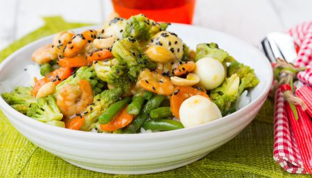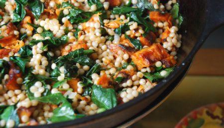 - Line a steamer, metal sieve or colander with a double thickness of muslin. Soak the couscous according to the instructions on the packet. Add the chick peas and prunes to the vegetables and cook for 5 minutes. Fork the couscous to break up any lumps and then spread it in the prepared steamer. Place on top of the vegetables, cover, and gently cook for 5 minutes until the couscous is hot.