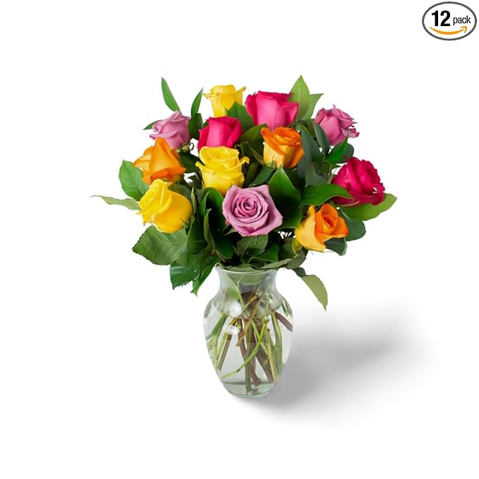This stunning bouquet of 12 Assorted roses is a true feast for the senses. Each rose is perfectly arranged in a captivating style. The roses are velvety and soft to the touch, creating a delicately textured and elegantly shaped.
