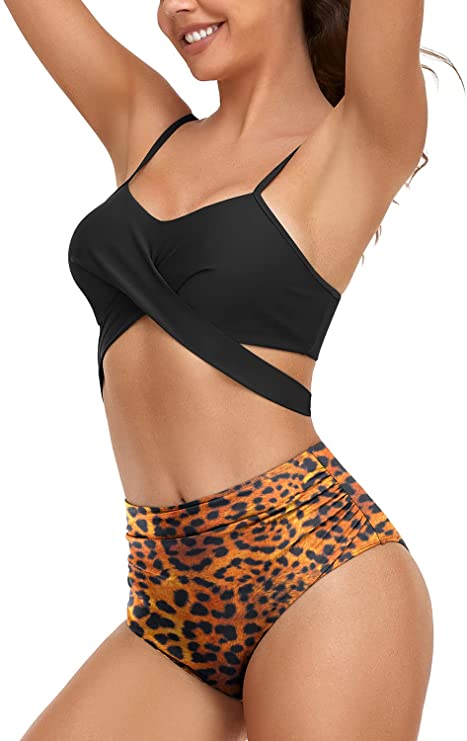 - This high waisted criss cross wrap bikini, its top comes with a push up design and its bottom comes with an elastic high waist design so that it will sure flatter your curves, sexy and cute.
