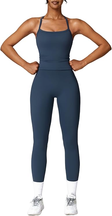 - Active Sets for Women: The yoga compression cami straps and tummy control leggings for women, allow you to move and run with ease. Scoop neck cami top compression sports bra, V-shaped back, can demonstrate the elegant butterfly back. Movable bra pads enhance up, concealed band at hem, can effectively offer a shock absorption in the long distance.