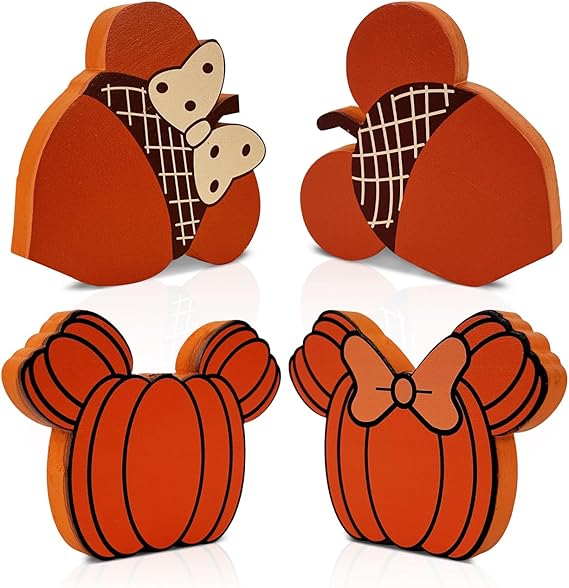 - 【What’s included】There are 4 pieces of mouse wooden fall pumpkin decor with 4 different shape, 1 piece of each style, designed with cartoon mouse elements, cute and adorable, a nice addition to thanksgiving home decor.