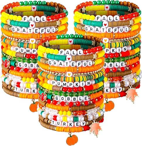 - Package Including: our package contains 48 fall clay beaded bracelets, which are designed in 16 styles; You can share to different friends, according to your own preferences to fold wear, Thanksgiving, Halloween and other different styles of bracelets