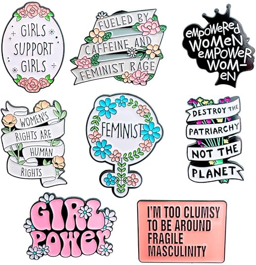 - Empowering Feminist Designs: The Feminist Pins 9PC set includes a variety of designs featuring empowering messages, feminist symbols, and illustrations. From “Girl Power” to strong female icons, these pins represent unity, strength, and the ongoing fight for equality.