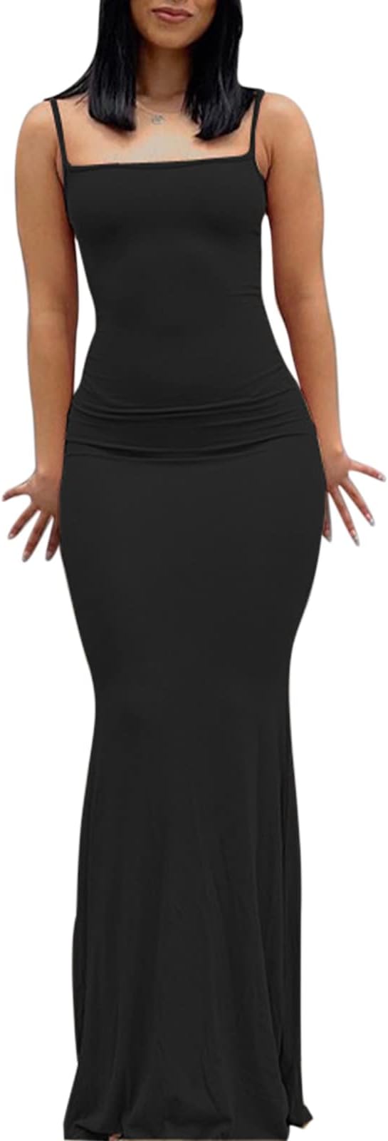 - MATERIAL: Bodycon slip maxi dress is made of 95% polyester & 5% spandex, skin-friendly, stretchy, breathable, comfortable to wear.