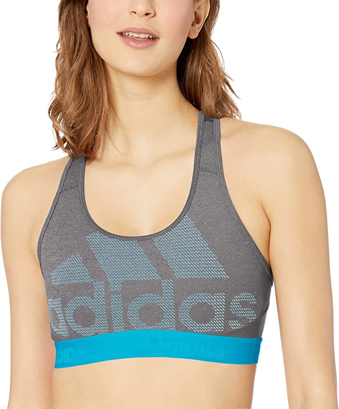 This sports bra helps keep everything in place so you can focus on your workout. The stretchy knit bra has a compression fit that offers medium support. A mesh panel in back keeps air circulating to cool you down.