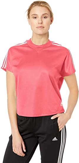 A retro look with a sporty spirit. This t-shirt is made of smooth knit fabric that has a bit of shine to it. Cut in a loose fit, the tee has a slightly cropped length designed to hit a little past your hip. A yoke across the back adds a polished touch.