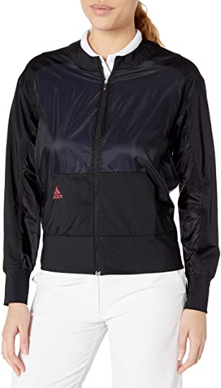 This women’s sport jacket delivers a modern look for the links. Built for a stay-put fit, it’s made of soft woven fabric with a bit of stretch for comfort and flexibility. Kangaroo pockets and a pleated back add sporty style.