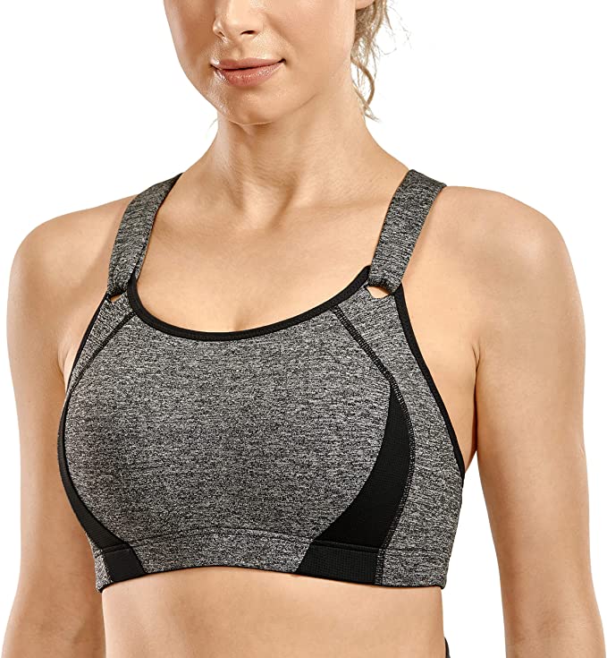 This sports bra has a racer back with adjustable straps and full coverage padded cups.With a soft and comfortable touch,it is ideal for wearing while exercising.Practical and comfortable!