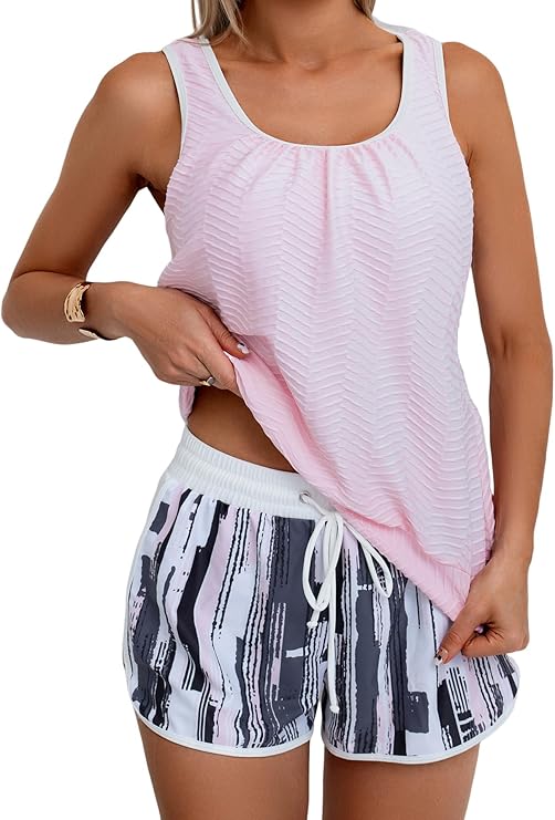 - Athletic Style:Sporty tank top with the boy shorts is cute and flattering. U-neck tankini top is loose and long enough to hide your belly, special open back design perfectly show your curves