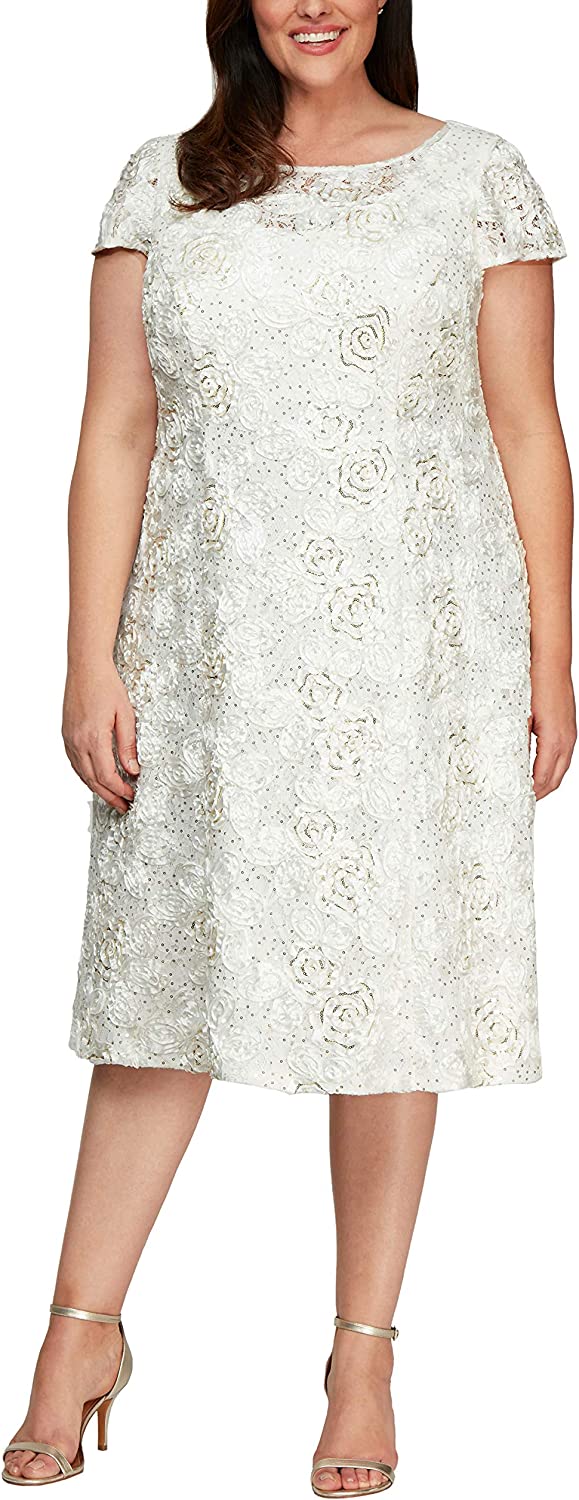 Our t-length party dress has a solid stretch jersey bodice, full soutache sequin skirt, and tie belt that is perfect for any evening event.