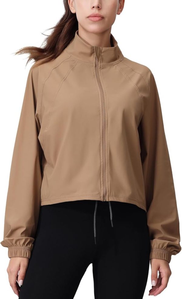 - This cropped jacket has breathable fabric and side pockets for running trails or running errands. Stretches with your body’s motion and eases back into shape so you don’t feel tension as you move