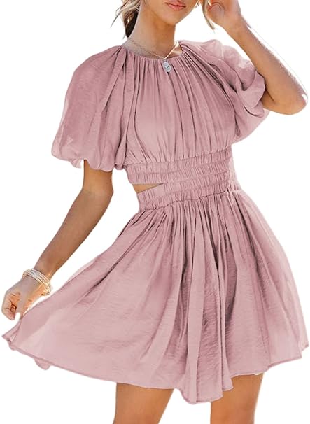 - Feature: Crew Neckline, Back Cutout, Pleated, Ruched Bust, Back Keyhole, Puff Sleeve, Elastic High Waist, Puffy Short Sleeve, Ruffle Tiered, Lantern Sleeve, Two Side Pockets, Above Knee Length, Swing A-Line Silhouette, Swing And Cute Hollow Out Dress.