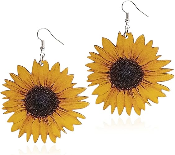 - 【Material】Ladies’ exquisite handmade accessories sunflower pendant earrings, made of hypoallergenic wood, healthy and environmentally friendly. 3D sunflower pattern design.