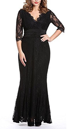 Feature: Elegant, Lace, Empire Waist, Ruched,Floor Length, Plus Size.
