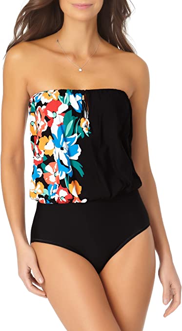 - Get beach or pool ready with the Anne Cole® Tunnel Blouson Front Keyhole One-Piece. This bathing suit is crafted in a bandeau cut with keyhole cutout at the center, removable neck strap, elastic back for optimum fit and multicolored floral print for a delicate finish.
